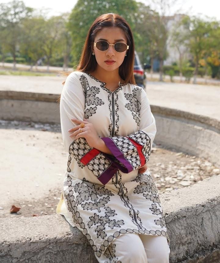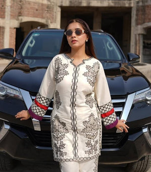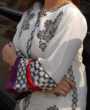 🔸 Color: Off-white base with black intricate embroidery