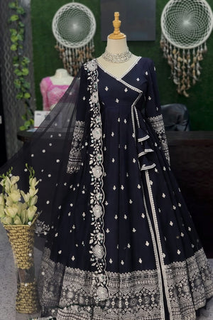 Beautiful 3-piece chiffon maxi with detailed embroidery, perfect for parties, weddings & festive occasions.